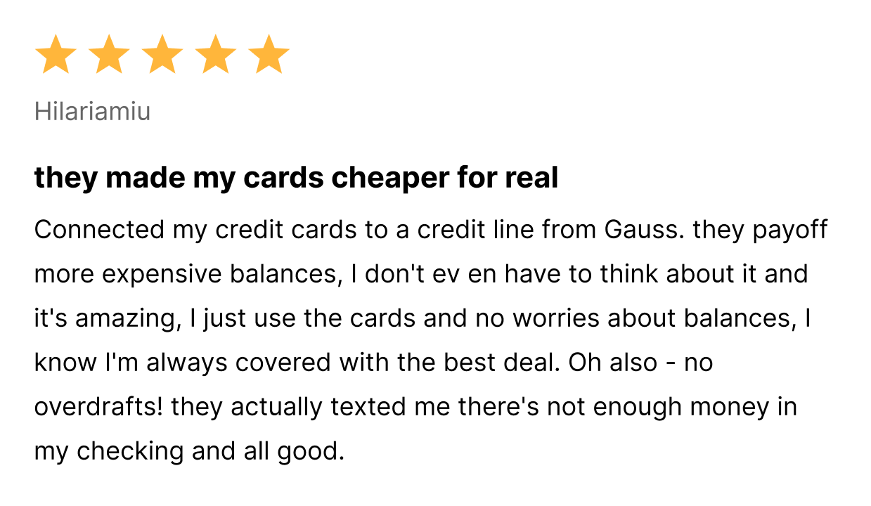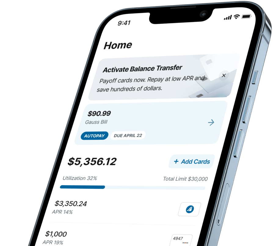 * Gauss credit line APR, which is the same as interest rate, for balance transfers is 12%-16%, depending on a number of factors, including credit profile. The rate is variable with prime rate. The majority of credit cards are eligible for the balance transfer if a credit line is approved.